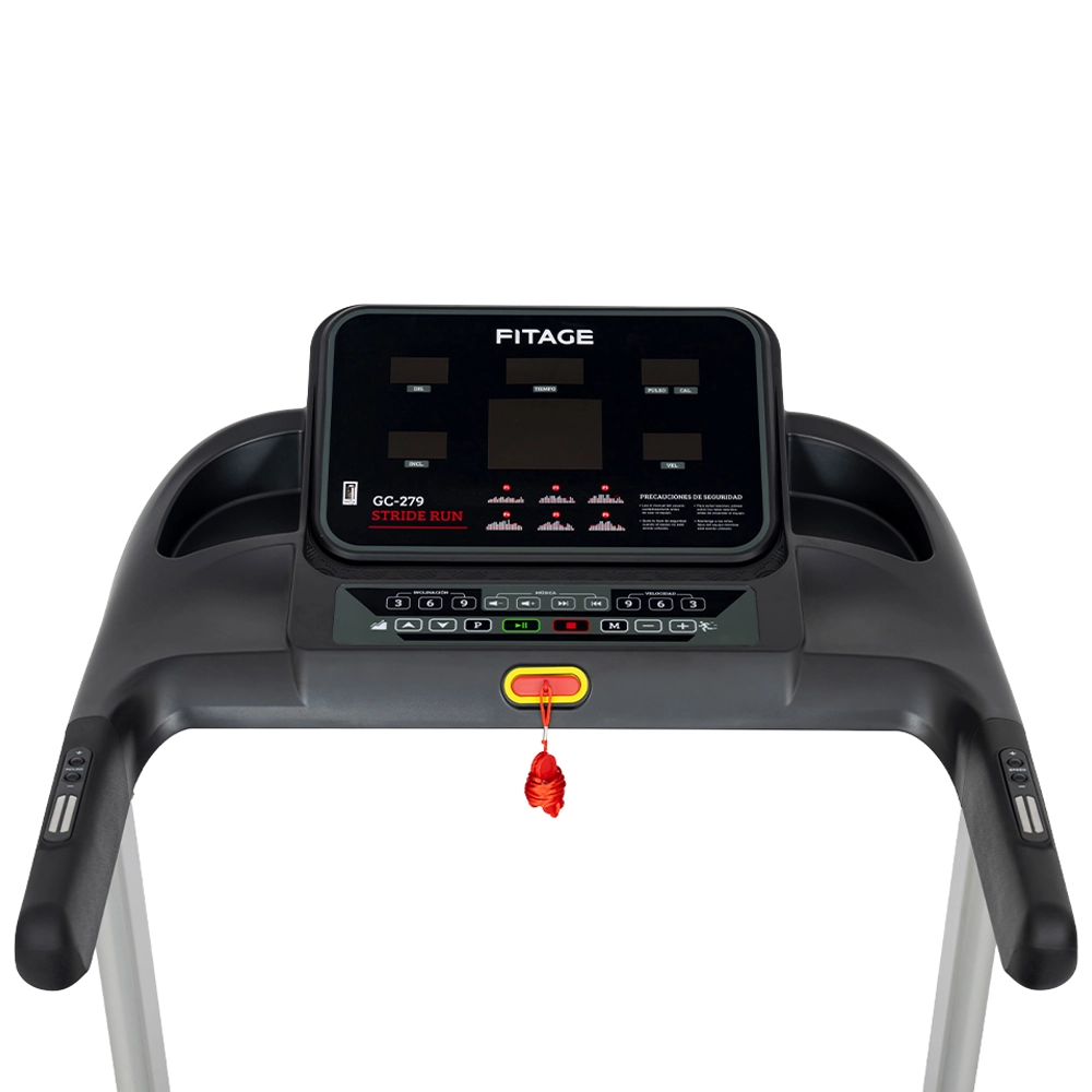 Para una experiencia más completa, incluye puerto USB, entrada MP3 con control de sonido desde el display y una botonera de acceso rápido en el manillar, que permite cambiar velocidad, iniciar o detener la cinta fácilmente sin interrumpir el ritmo.
